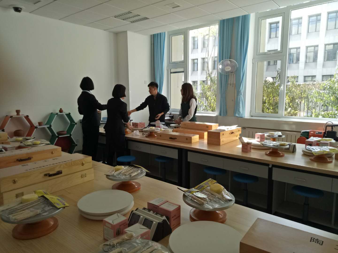 10月23日河北偉聯(lián)教學(xué)儀器設(shè)備有限公司陶藝培訓(xùn)技術(shù)專員來(lái)到天津高新區(qū)第一學(xué)校,對(duì)學(xué)校的老師們進(jìn)行專業(yè)培訓(xùn),我們的技術(shù)人員主要對(duì)陶藝課程的上課流程、產(chǎn)品的使用及注意事項(xiàng)等做了詳細(xì)的講解,下圖為偉聯(lián)專員與老師們交流討論: